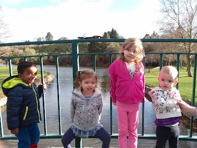 We took them to Ann Morrison Park where we found a beautiful bridge and playground. In photo: Prabhu, Leslie, Emily, and Abby.
