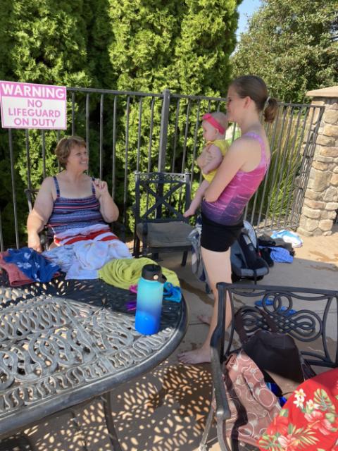 I took my kids swimming in my parents' neighborhood pool the day before school started.